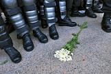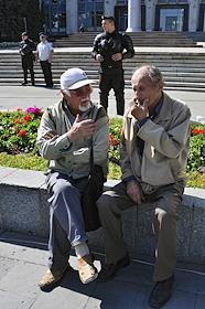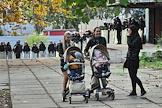 Антиправительственный митинг в центре Кишинева. Сотрудники полиции во время дежурства и оцепления места проведения митинга. Жанровая фотография. Молодые мамы с детьми в колясках.