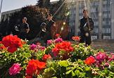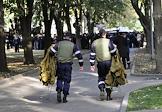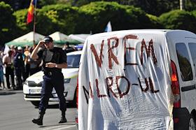Антиправительственный митинг в центре Кишинева. Сотрудники полиции во время дежурства и оцепления места проведения митинга.
