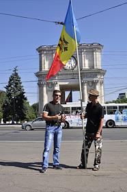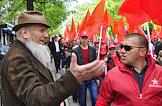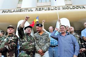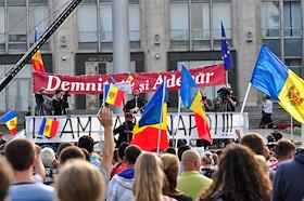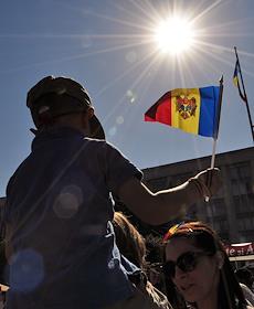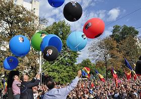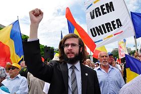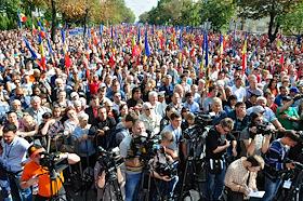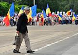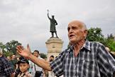 Многотысячная акция протеста, участники которой требовали отставки президента и правительства, отстранения олигархов от власти и обеспечения свободы СМИ прошла в центре Кишиневе. Один из лидеров Гражданской платформы, депутат первого парламента Молдавии Валентин Долганюк (справа) во время акции.