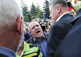 Антиправительственный митинг у здания Парламента Молдавии. Участник митинга прорывает полицейское оцепление.