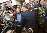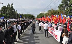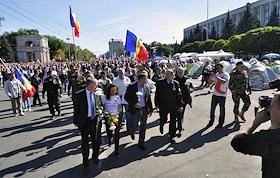 Политическая ситуация в Молдавии. Лидер оппозиционной Либерально-демократической партии Молдовы Владимир Филат (в центре) во время антиправительственного митинга в центре Кишинева.
