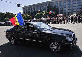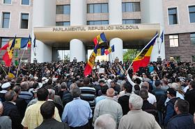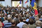 Политическая ситуация в Молдавии. Лидер оппозиционной Либерально-демократической партии Молдовы Владимир Филат (в центре) во время антиправительственного митинга у здания Парламента Молдавии.