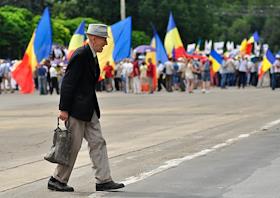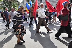 Политическая ситуация в Молдавии. Жанровая фотография. Пожилая женщина просит милостыню.