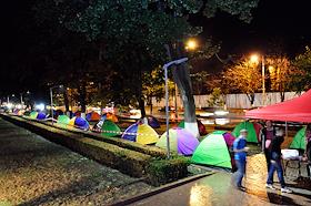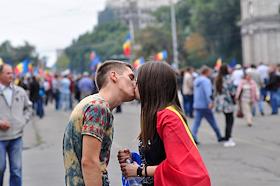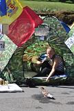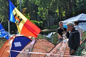 Участники акции протеста в палаточном лагере участников антиправительственного митинга в центре Кишинева.