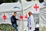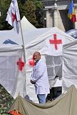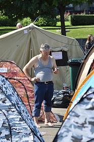 Акция протеста в палаточном лагере участников антиправительственного митинга в центре Кишинева. Сотрудник полиции в лагере.