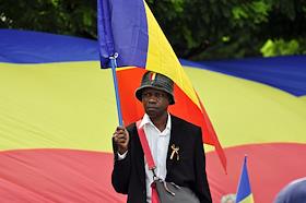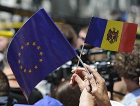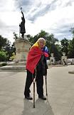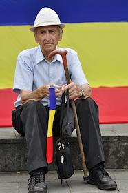 Политическая ситуация в Молдавии. Жанровая фотография. Пожилой мужчина на фоне государственного Флага Молдавии.