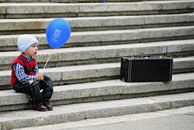 Политическая ситуация в Молдавии. Жанровая фотография. Ребенок с воздушным шариком на лестнице.