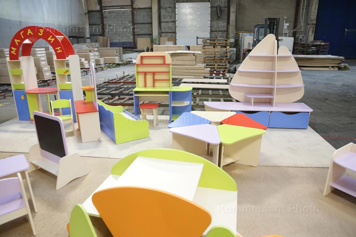 Производственный цех на мебельной фабрике "Парма". Продукция фабрики для детей.