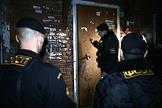 Мероприятия по взысканию задолженности по оплате за бытовой газ с жильцов квартир с участием службы судебных приставов и ООО "Газпром межрегионгаз Пермь". Судебный пристав стучится в дверь дома, где живет должник.