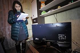 Мероприятия по взысканию задолженности по оплате за бытовой газ с жильцов квартир с участием службы судебных приставов и ООО "Газпром межрегионгаз Пермь". Судебный пристав описывает имущество (телевизор)должника.