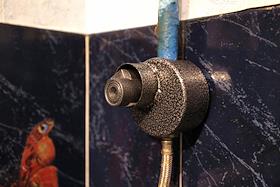 Мероприятия по взысканию задолженности по оплате за бытовой газ с жильцов квартир с участием службы судебных приставов и ООО "Газпром межрегионгаз Пермь". Блокирующее устройство, установленное на газовой трубе для блокировки подачи газа.