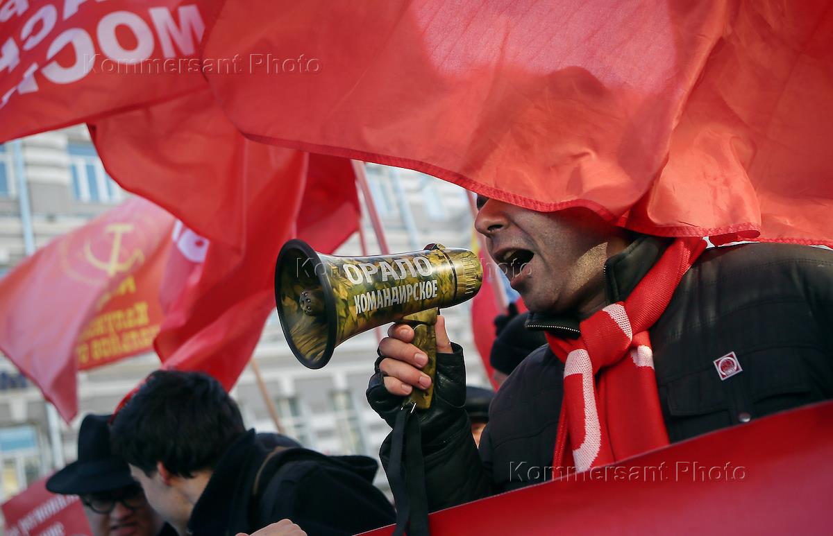 Шествие и митинг, посвященные 98-й годовщине Октябрьской Революции, организованные Коммунистической партией России (КПРФ).