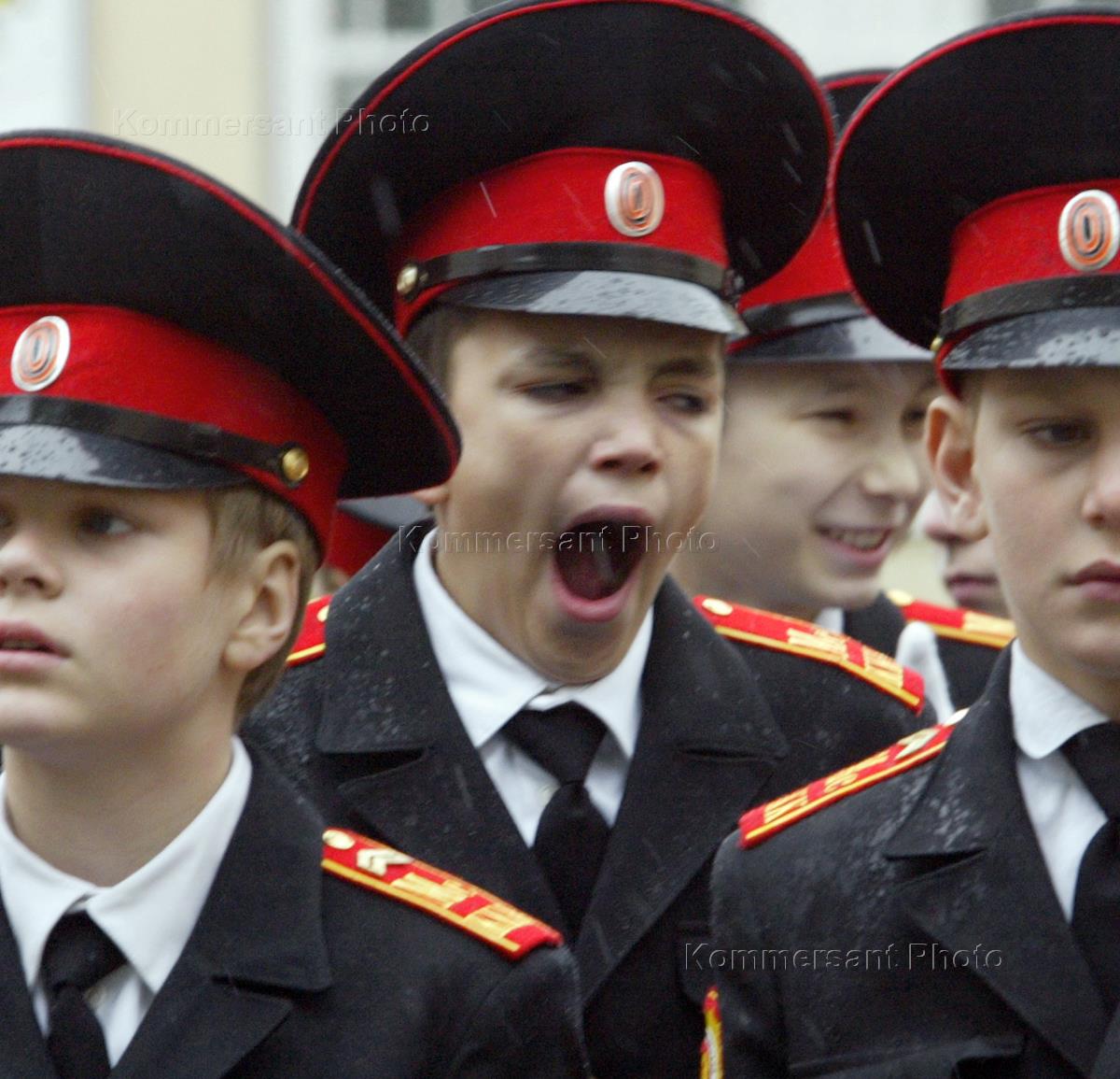 Cadets (students of a 'Cadet Corps' - secondary boarding school with military specialisation) wait in formation for arrival of the Moscow Mayor Yury Luzhkov.