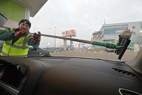 Мойка стекла автомобиля основателя мебельного бюро "Woodi Bureau" Полины Балашовой.