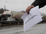 Акция протеста водителей-дальнобойщиков против закона о взимании оплаты за проезд по дорогам. Плакат "Мы против сбора нет платону".