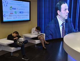 VI Всероссийский конгресс пациентов, посвященный проблемам здравоохранения в России. Руководитель Федерального бюро медико-социальной экспертизы Михаил Дымочка (на экране) во время заседания конгресса в МИА "Россия сегодня".
