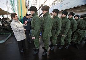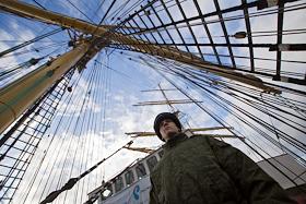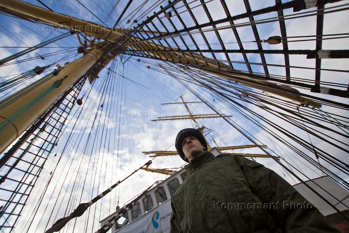 Отправка призвников из Калининградской области в президенский полк с борта барка "Крузенштерн" (Калининградская область).