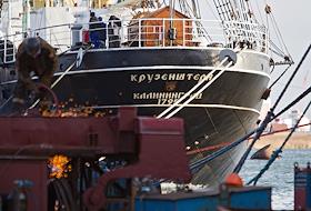 Барк "Крузенштерн" на ремонте на судоремонтном заводе города Светлый (Калининградская область).