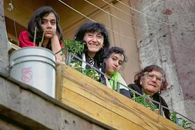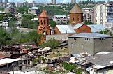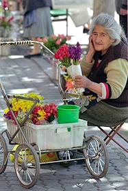 Виды Ереване. Пожилая женщина торгует цветами на одной из улиц города.