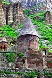 В монастырских пределах. Древний монастырь Армении IV века ГЕГАРД (Айриванк, Гехард) или Монастырь Копья ("пещерный монастырь"), выдолбленный глубоко внутри утеса — монастырский комплекс, в Котайкской области Армении в ущелье горной реки Гохт ,в 40 км от Еревана. Внесен ЮНЕСКО в список объектов Всемирного культурного наследия.
