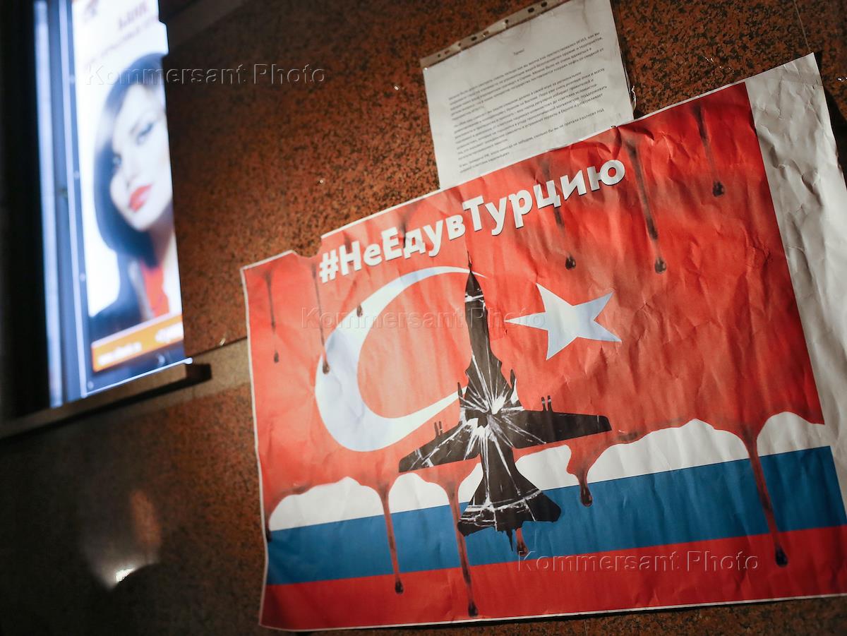 Митинг у здания посольства Турции в Москве. Плакат с надписью "НЕ еду в Турцию".