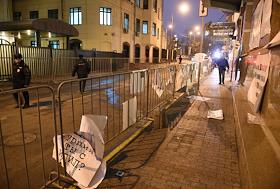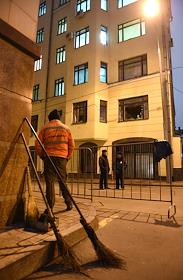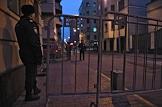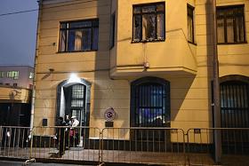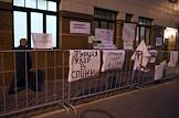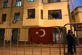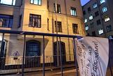 The protest action against activities of the sky forces of Turkey . The action held by the embassy of Turkey. Policemen by the embassy.
