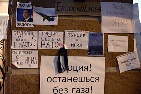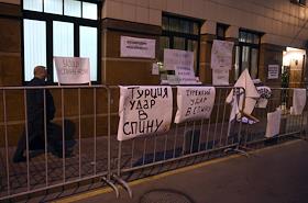 The protest action against activities of the sky forces of Turkey . The action held by the embassy of Turkey.