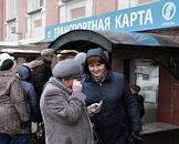 Жанровая фотография. Очередь пенсионеров за транспортными картами.