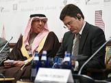 Форум "Россия и Саудовская Аравия - новые перспективы торгово-экономического и инвестиционного сотрудничества". Министр энергетики России Александр Новак (слева) и глава Управления Саудовской Аравии по инвестициям Абдуллатиф аль-Осман (справа) во время форума в отеле "Рицт Карлтон".