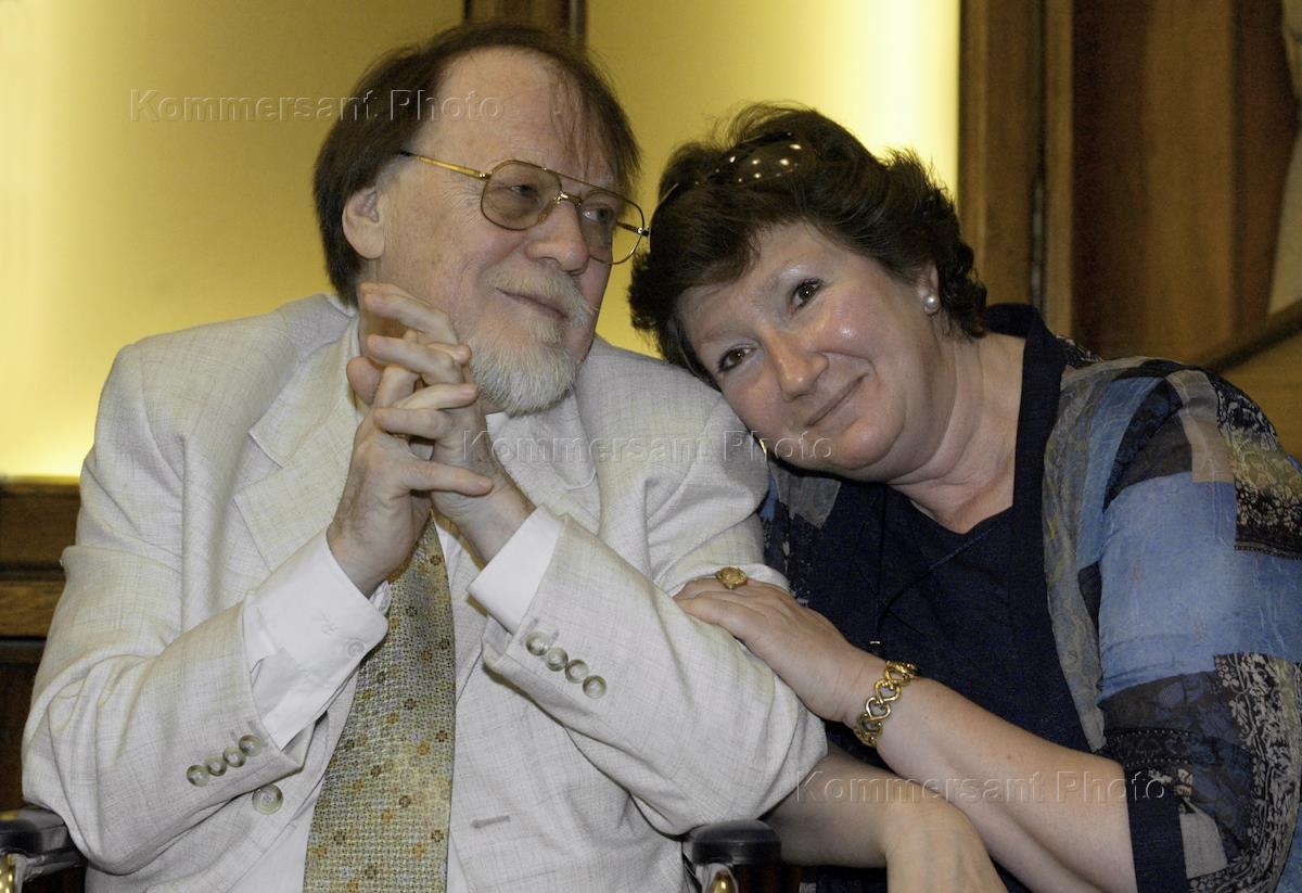 Драматург Михаил Рощин (слева) во время вручения ему ежегодной премии имени Андрея Сахарова "За гражданское мужество писателя". Премию учредили независимое движение писателей "Апрель" совместно с партией "Союз правых сил" (СПС). Вручение состоялось в центральном доме литераторов.