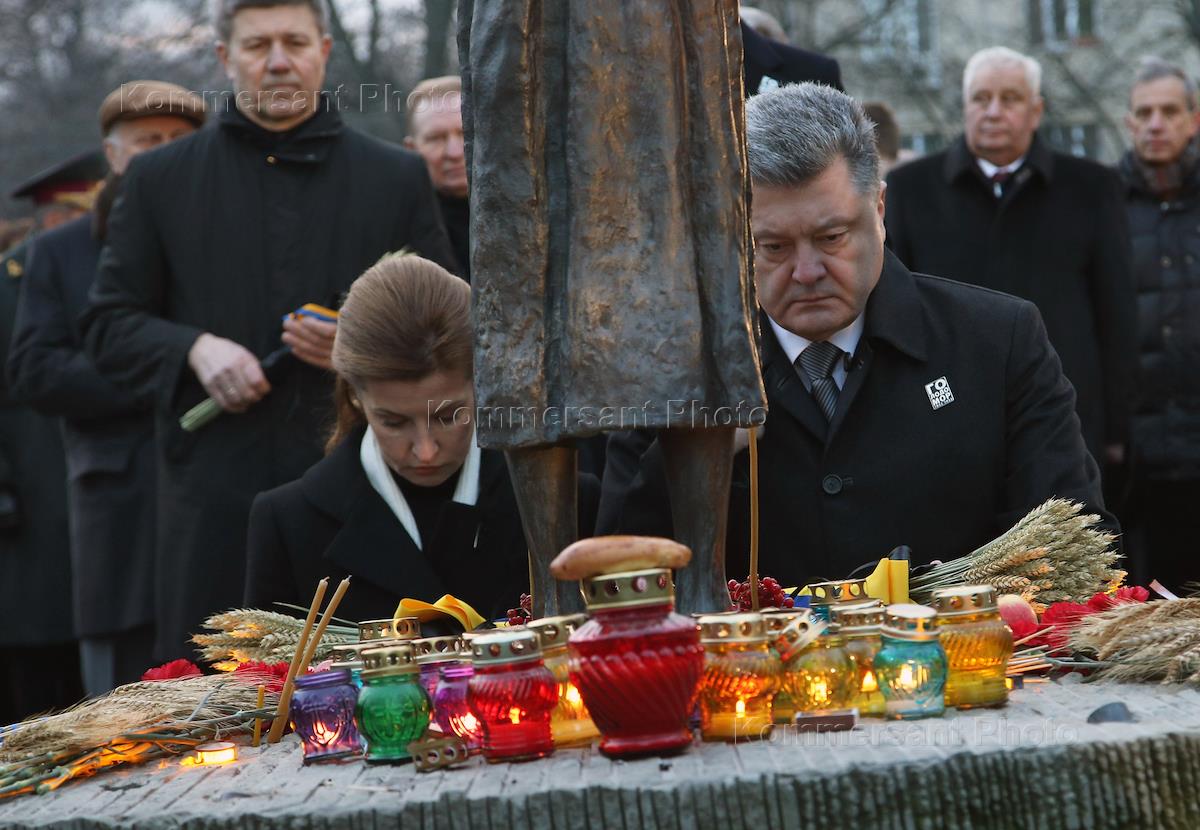 Президент Украины Петр Порошенко с супругой Мариной во время участия в мероприятиях в связи с Днем памяти жертв голодоморов в Национальном музее "Мемориал жертв Голодомора" в Киеве.