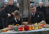 Президент Украины Петр Порошенко во время участия в мероприятиях в связи с Днем памяти жертв голодоморов в Национальном музее "Мемориал жертв Голодомора" в Киеве.