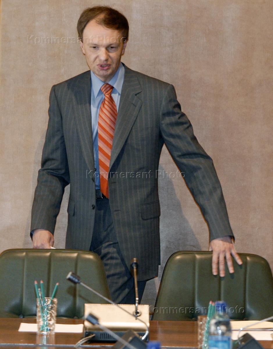 Russian Deputy Press Minister Mikhail Seslavinsky (left) and chairman of the Central Electoral Commission (CIK) Alexander Veshnyakov take part in a meeting of the Press Ministry College.