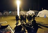 Ситуация в Крыму в связи с прекращением электроснабжения полуострова с территории Украины. Местные жители в палаточном городке МЧС России на стадионе школы №23 Симферополя.
