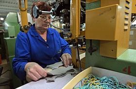 Производство Егорьевской фабрики детской обуви "Котофей". Работа швейного цеха.