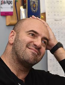 Телеведущий Валдис Пельш во время интервью.