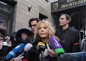 Церемония прощания с кинорежиссером Эльдаром Рязановым в Центральном доме литераторов. Вдова режиссера Эльдара Рязанова Эмма Абайдулина (слева) во время церемонии.