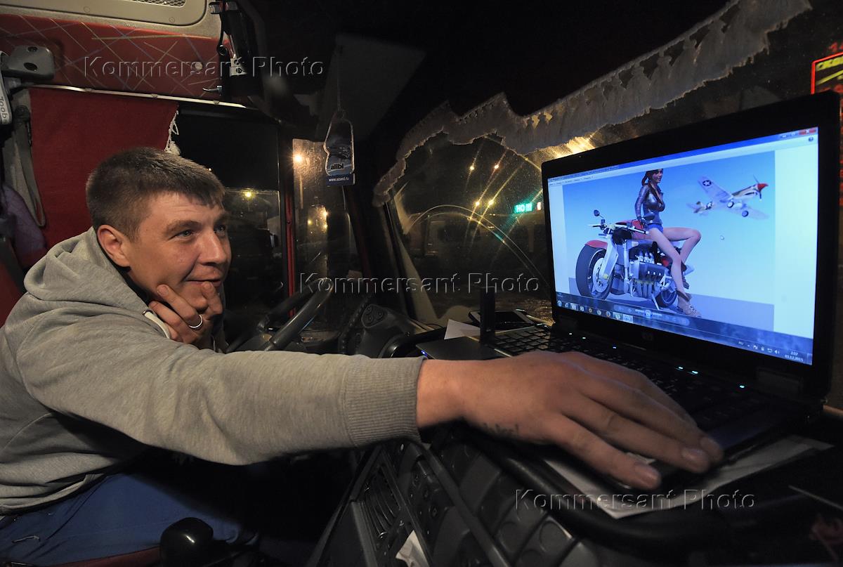 All-Russia protest action of drivers of multi-deck trucks. The action is against the 'Platon' toll collection system (truckers have to pay taxes for each kilometer of federal highways they travel). Longhaul truckers are during the action on the highway from Moscow to Saint-Petersburg.