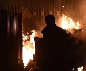 Последствия пожара у здания МВД России на улице Воздвиженка.