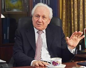Председатель Совета конгресса российской интеллигенции, президент Фонда социально-экономических и интеллектуальных программ, бывший руководитель администрации президента России Сергей Филатов во время интервью.
