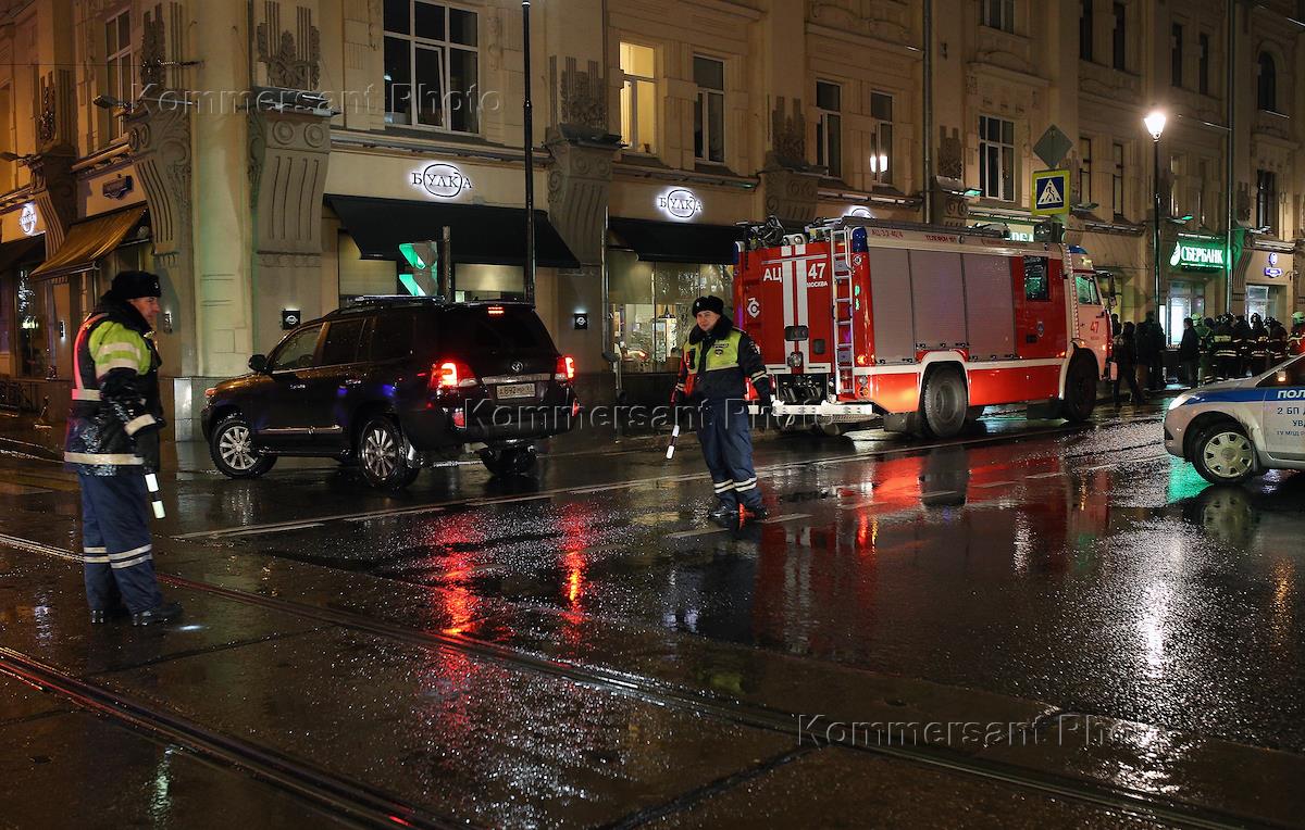 Сотрудники МЧС России на остановке общественного транспорта на улице Покровка, где произошел взрыв неизвестного взрывного устройства. Пострадали три человека.