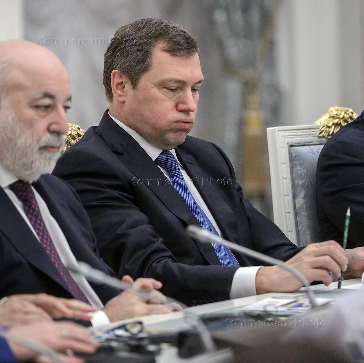 Владелец частной инвестиционной группы Volga Group Геннадий Тимченко (справа) перед началом заседания попечительского совета Мариинского театра в Кремле.
