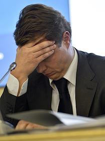 Руководитель департамента транспорта и развития дорожно-транспортной инфраструктуры города Москвы Максим Ликсутов во время слушаний "Организация парковочного пространства в городе Москве". Слушания прошли в Общественной палате.