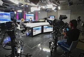 Работа телеканала "Дождь" в новом офисе на дизайн-заводе "Флакон". Студия.