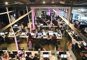 Работа телеканала "Дождь" в новом офисе на дизайн-заводе "Флакон". Интернет-редакция.