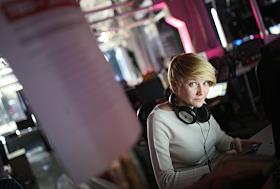 Работа телеканала "Дождь" в новом офисе на дизайн-заводе "Флакон". Корреспондент Мария Борзунова (в центре).