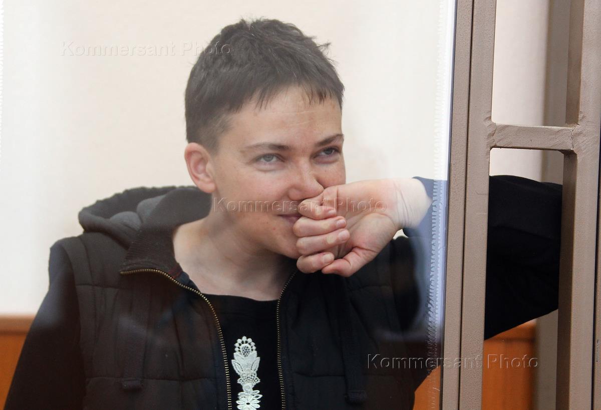 Украинская военнослужащая Надежда Савченко, обвиняемая в причастности к гибели российских журналистов в Донбассе, во время заседания Донецкого городского суда Ростовской области..
