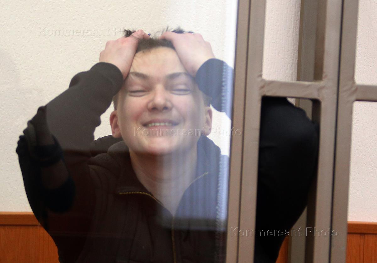 Украинская военнослужащая Надежда Савченко, обвиняемая в причастности к гибели российских журналистов в Донбассе, во время заседания Донецкого городского суда Ростовской области..