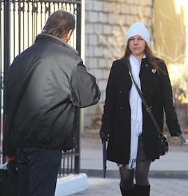 Сестра украинской военнослужащей Надежды Савченко, обвиняемой в причастности к убийству российских журналистов под Луганском, Вера Савченко после заседания Донецкого городского суда Ростовской области.