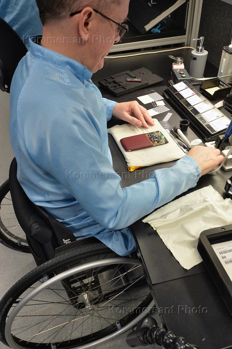 Производственный процесс в цехе на фабрике мобильных телефонов Vertu.
